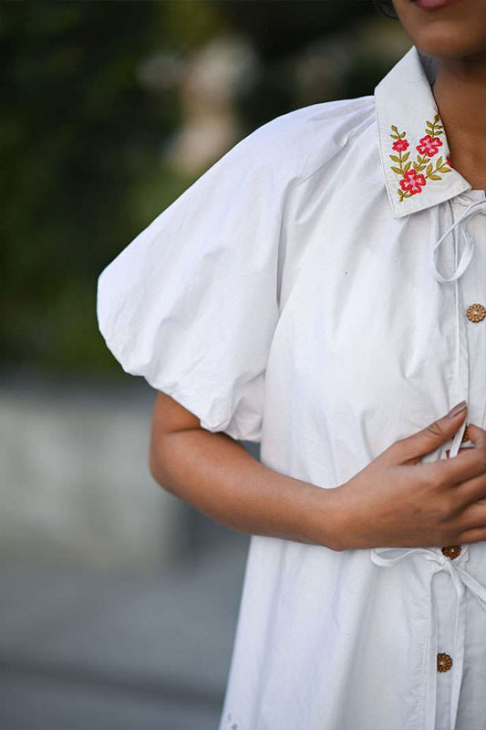 White Dress With Red Flower Collar