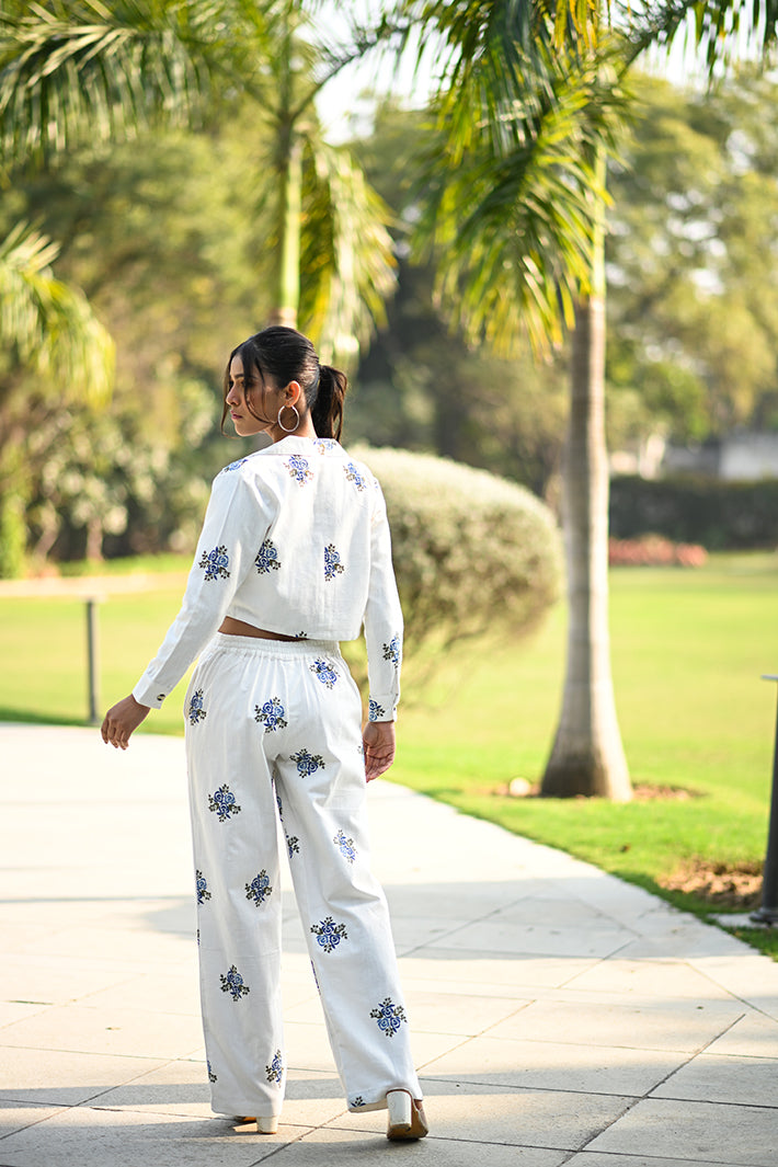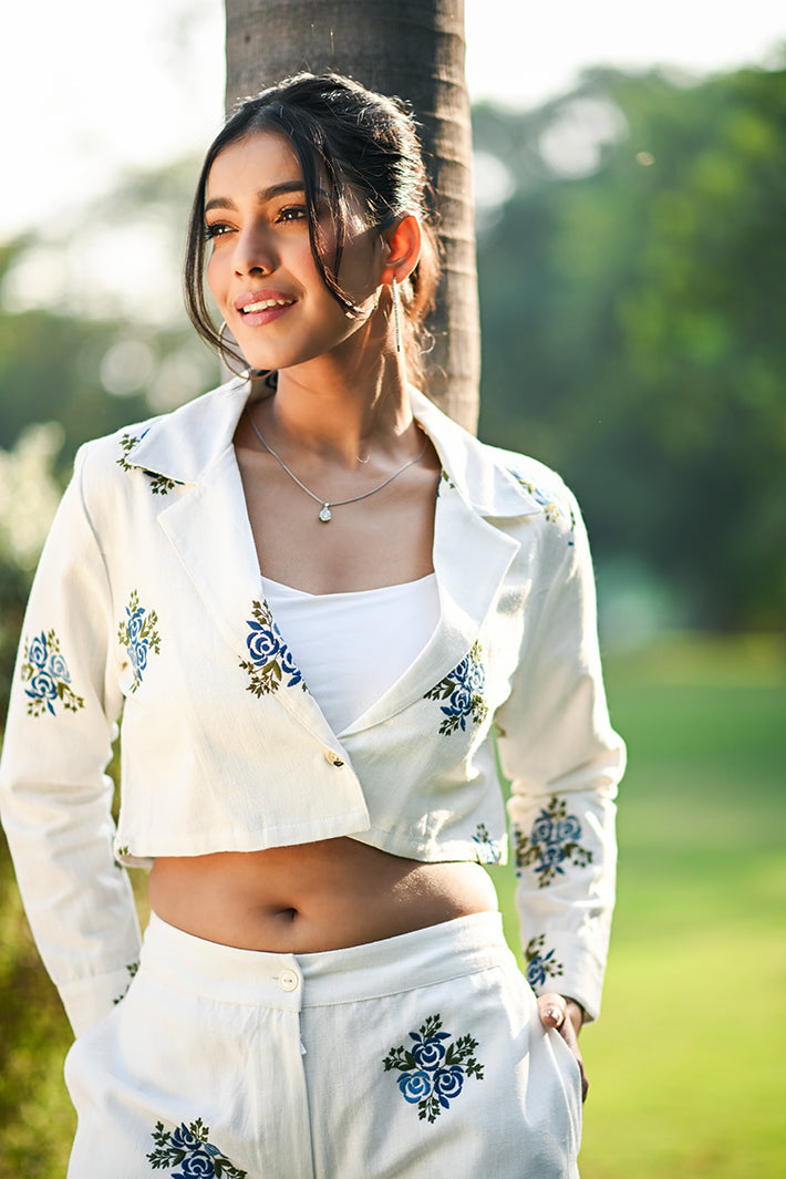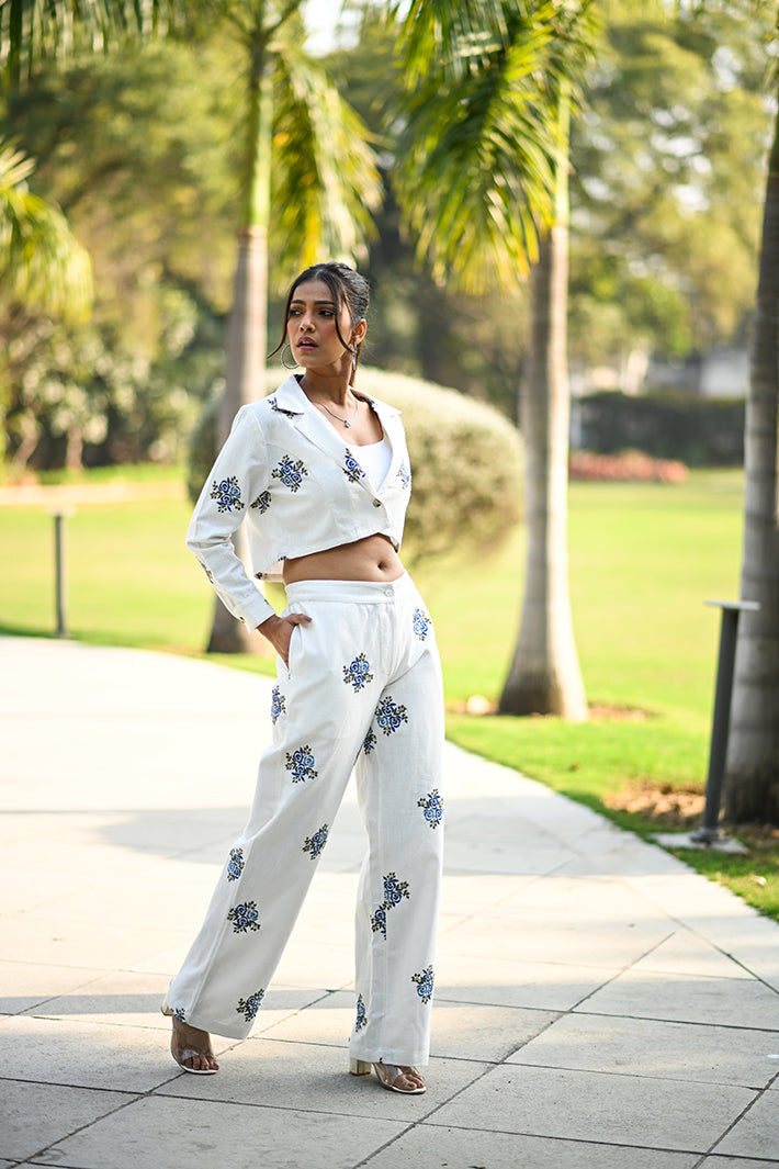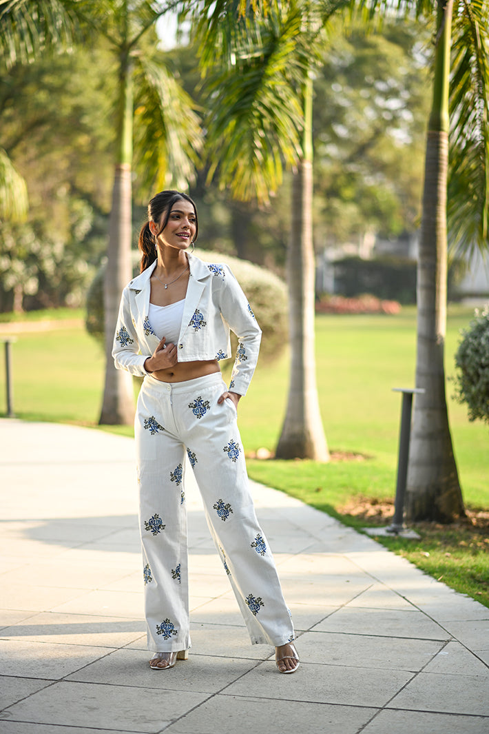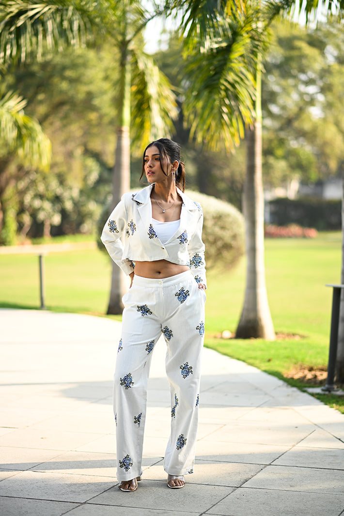 Make a statement with Blue Rose Embroidered Jacket and Pants Co-ord Set. Embrace a blend of cultural elegance and contemporary fashion.