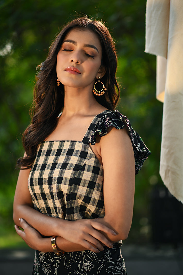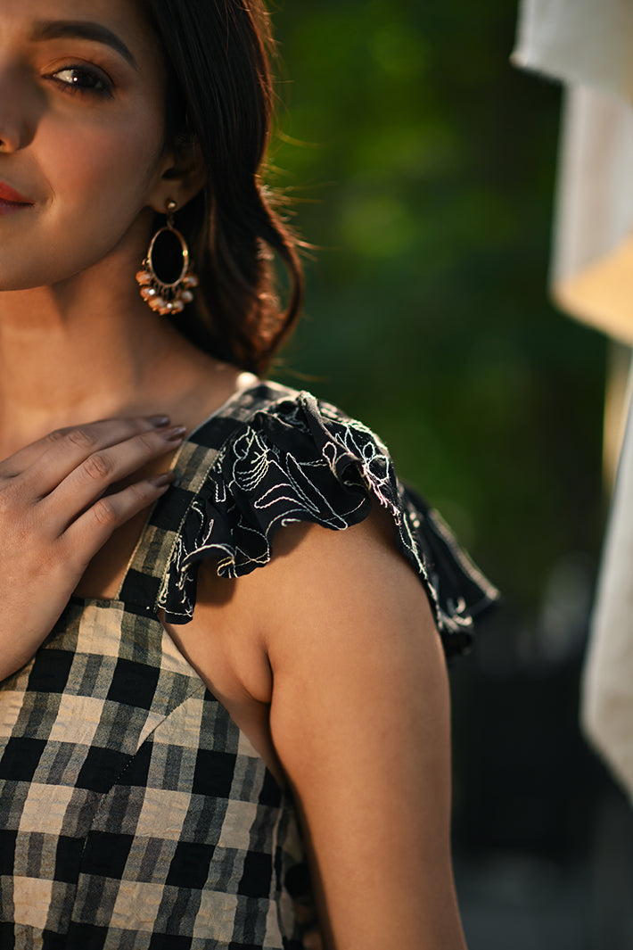 A perfect fusion of classic checks and intricate embroidery, this co-ord set brings effortless style and comfort to your wardrobe. Ideal for beach vacations and beyond, it blends timeless elegance with a breezy, relaxed feel.
